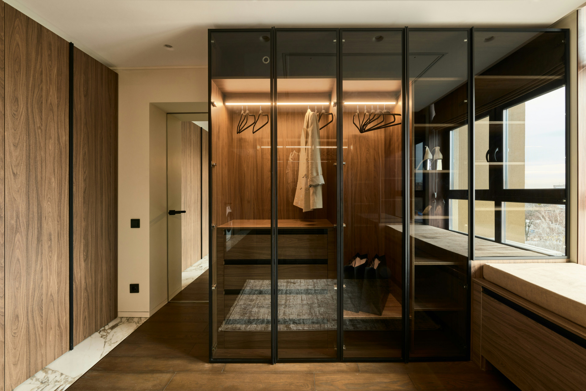 Garderoben är lämplig för större rum där både funktionalitet och ett modernt, enhetligt utseende krävs.